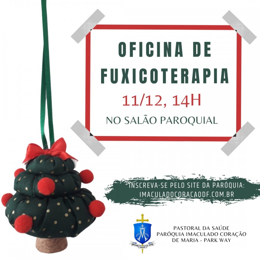 Com o objetivo da promoção da saúde e bem estar, a Pastoral da Saúde convida para a oficina de FUXICOTERAPIA, que será realizada no dia 11 de dezembro (sábado) a partir das 14h no Salão Paroquial.