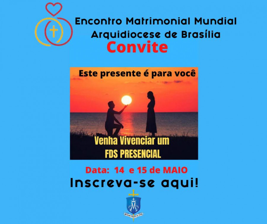 Venha viver uma experiência de escuta, compartilhamento e conexão em um retiro de casais do Encontro Matrimonial Mundial (EMM), nos dias 14 e 15 de maio de 2022. Para participar do retiro, que será presencial, inscreva-se aqui.
